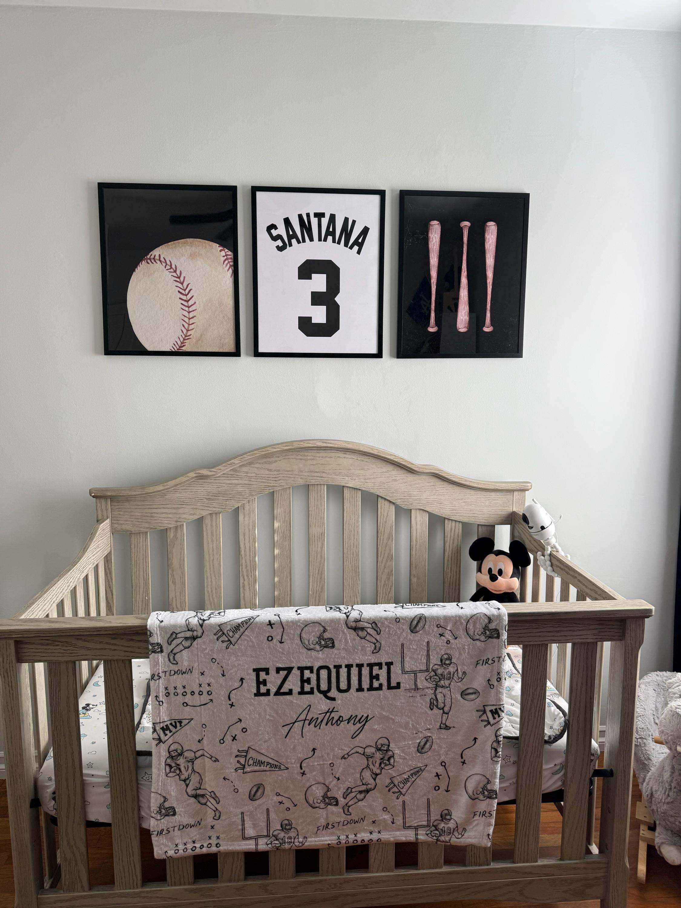 These baseball nursery prints is the perfect addition to a baseball themed boys room. You will receive three prints, with each one measuring the size you select. The color used is navy, however this can be changed to match any team or nursery color you need...simply add your color change request in the "personalize" section, and a proof will be sent for your approval. Please include your name and number change as well.