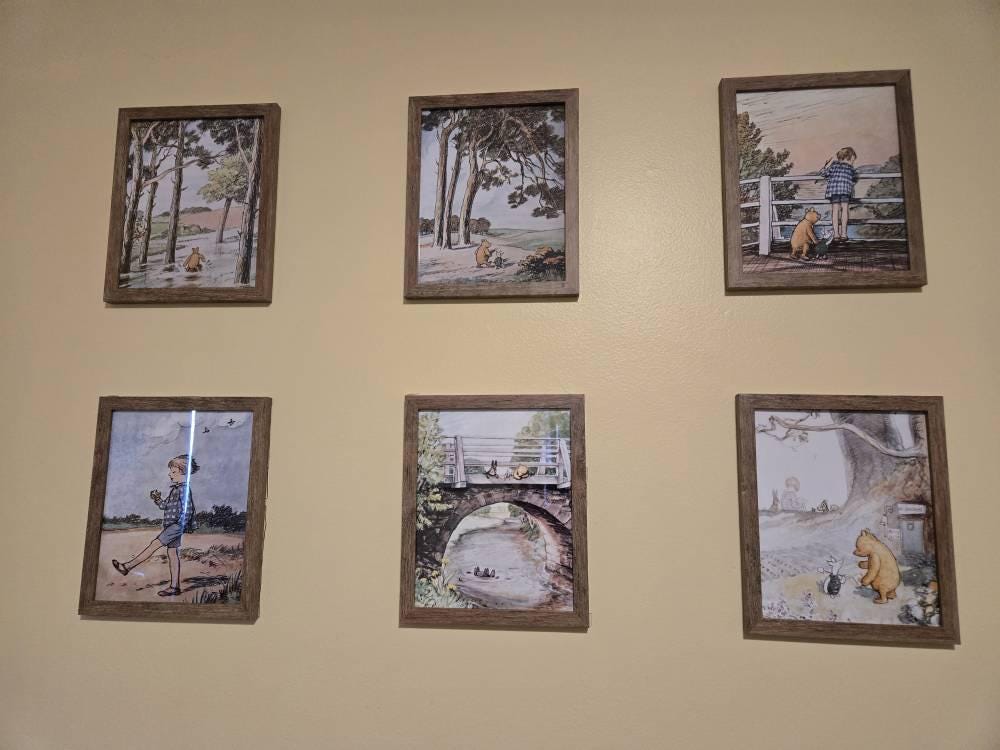 These vintage Classic Pooh nursery prints are reprints of the original illustrations. You will receive six prints, each one being digitally restored and enhanced. The six prints will each measure the size you select. Frames are not included with the photo paper prints.