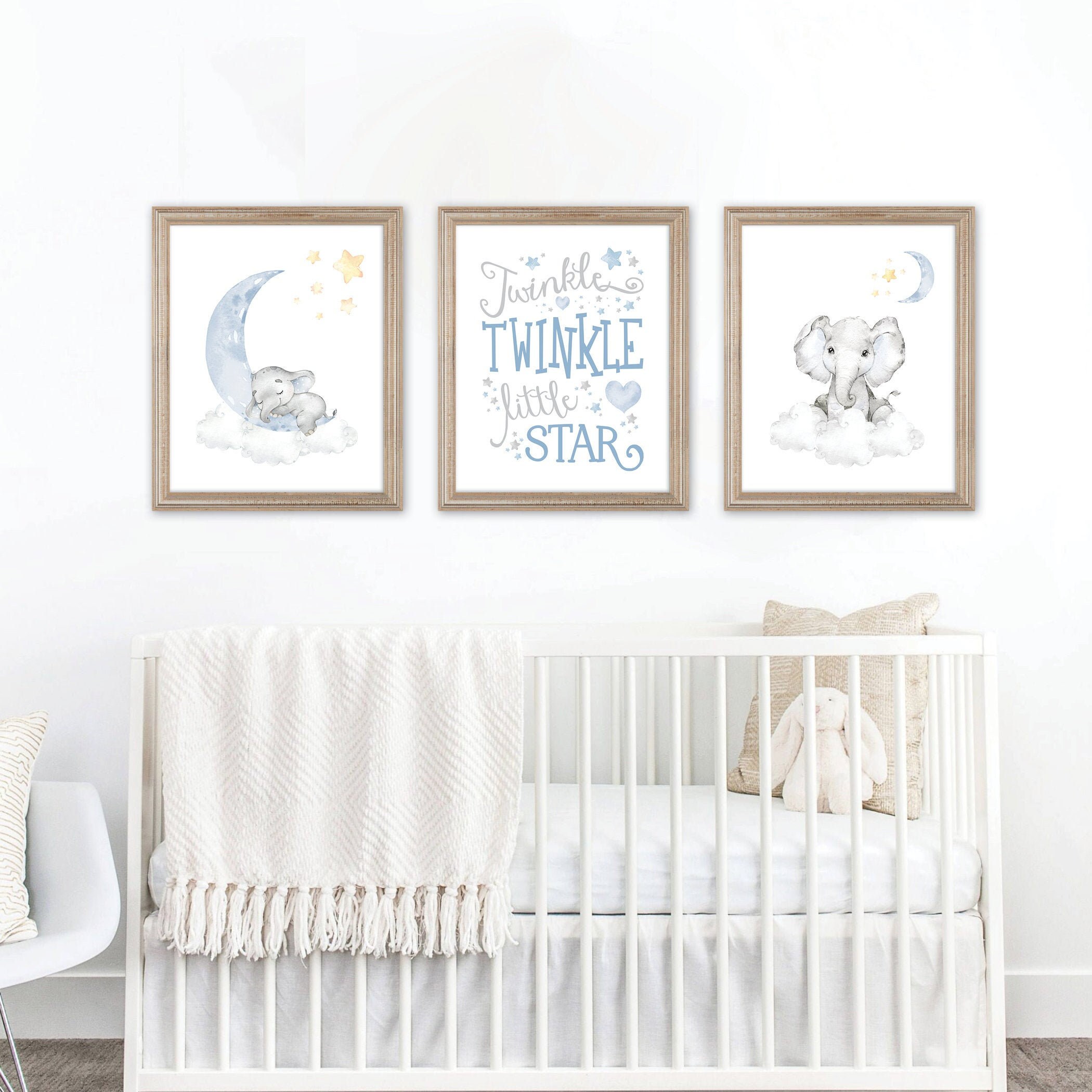 Blue Nursery Prints, Boy Baby Room Decor, Elephant Nursery Prints, Nursery Decor Boy, Nursery Art, Clouds and Stars Prints, Elephant Art